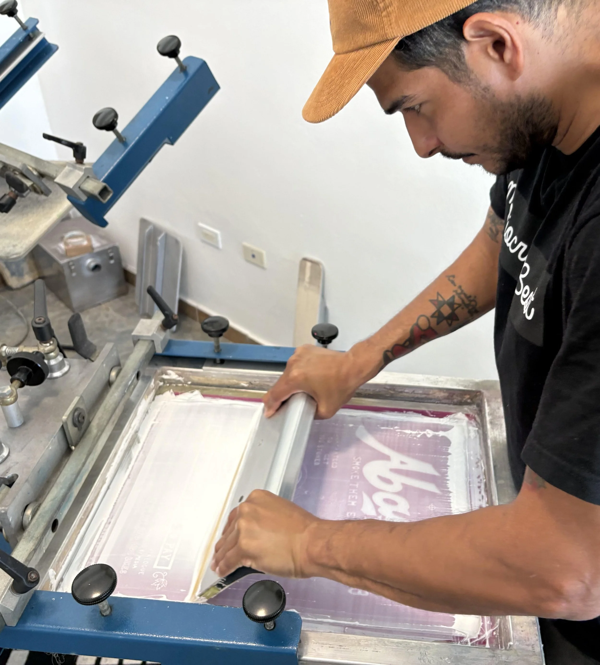 Every shirt, hat, and tote bag is meticulously hand-screen printed at our shop in Hato Rey by local artists. By choosing traditional DIY screen printing we ensure every piece carries a unique finish and the durability to survive a bail.